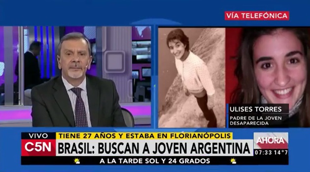 Entrevistas, Sociedad Sociedad: Buscan a una joven argentina desaparecida en Brasil. Habla su padre Fecha: 26 agosto, 2016Autor/a: AJP Producciones 0 Comentarios Comparte esto: Haz clic para compartir en X (Se abre en una ventana nueva) X Haz clic para compartir en Facebook (Se abre en una ventana nueva) Facebook Me gusta Cargando...