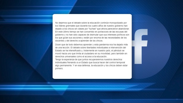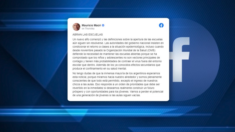 Inicio El reclamo de Mauricio Macri: «Abran las escuelas» Fecha: 14 enero, 2021Autor/a: AJP Producciones 0 Comentarios Comparte esto: Compartir en X (Se abre en una ventana nueva) X Comparte en Facebook (Se abre en una ventana nueva) Facebook Me gusta Cargando...