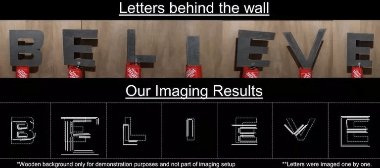 Luego de esto, los receptores capturaban la potencia de la señal reflejada y usaron esta información para generar imágenes de alta resolución de los objetos detrás de la pared. Gracias a este proceso, el equipo logró descifrar la palabra Belive, que estaba escrita al otro lado de una pared. Lo hicieron letra por letra, demostrando la capacidad de esta tecnología para distinguir y reconstruir objetos complejos.