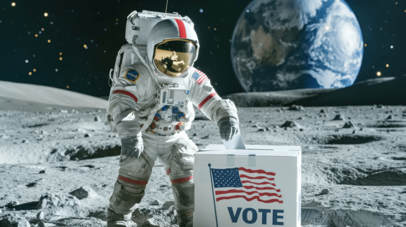 Según explica la publicación Space, muchos integrantes de la NASA tienen residencia en Texas; allí, más específicamente en Houston, se encuentra el Centro Espacial Johnson donde reciben entrenamiento. En función de ello, aquel Estado aprobó en 1997 una ley que permite a los astronautas emitir sus votos desde la órbita. Ese mismo año, David Wolf, que se encontraba a bordo de la Estación Mir de Rusia, fue el primer estadounidense que participó en los comicios desde el espacio.
