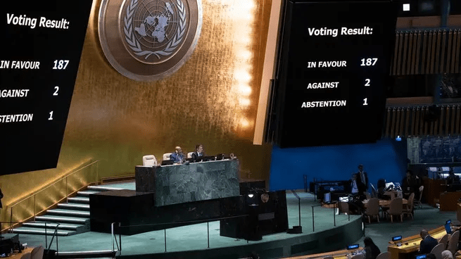 El documento fue apoyado incluso por Estados Unidos, país al que la administración de Javier Milei suele alinearse, y sólo hubo siete abstenciones: Francia, Laos, Lituania, Mali, Rumania, Bulgaria y Eslovaquia.