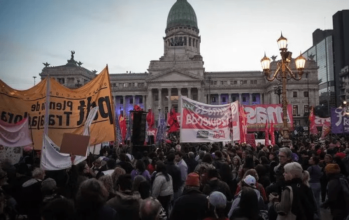 En ese marco, en las inmediaciones del Congreso, sobre la Avenida de Mayo y Santiago del Estero, se registraron los primeros incidentes entre un grupo de manifestantes y un grupo de la Policía de la Ciudad.